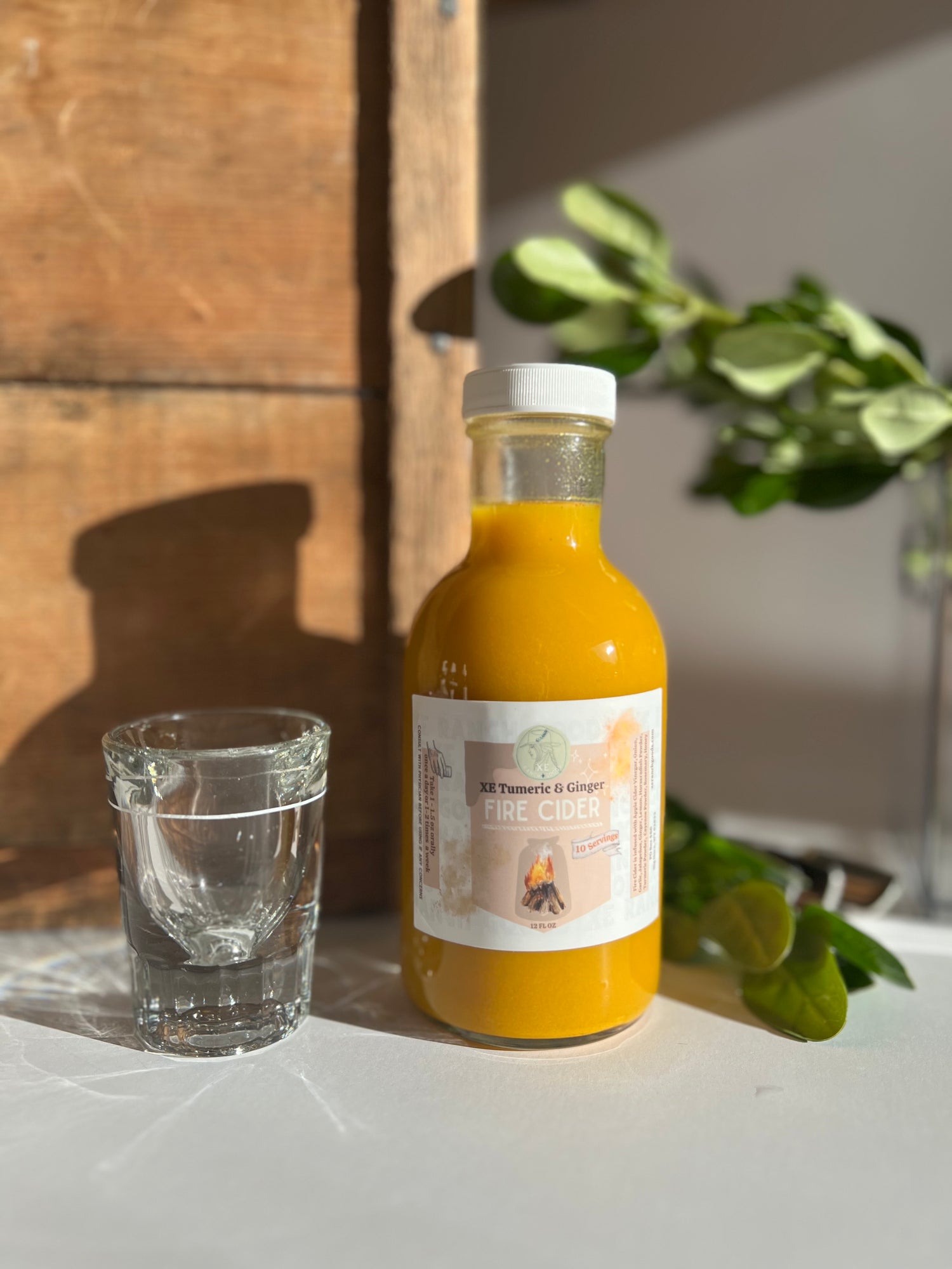 A classic tonic drink that has a rich history. My XE blend is made with Braggs Apple Cider Vinegar, Onion, Garlic, Lemon Juice and zest, Rosemary, Jalapeños, Ginger root, Turmeric root, Cayenne, Horseradish. It's a zesty & tangy taste that is packed with anti-inflammatory properties. Can use in recipes, serve with bread and olive oil, or take a daily shot, or make a cocktail with it.