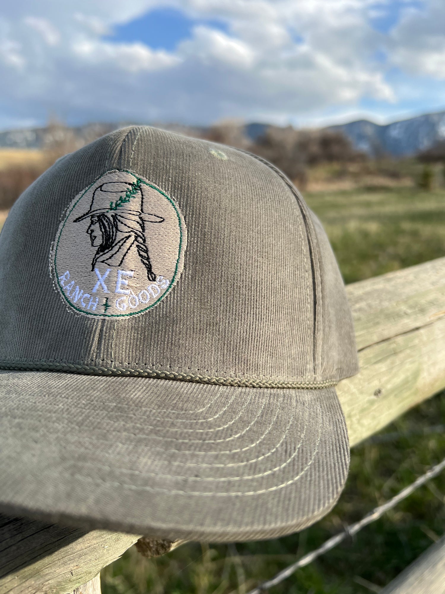The coolest sage green full corduroy hat with a snapback. One of a kind!